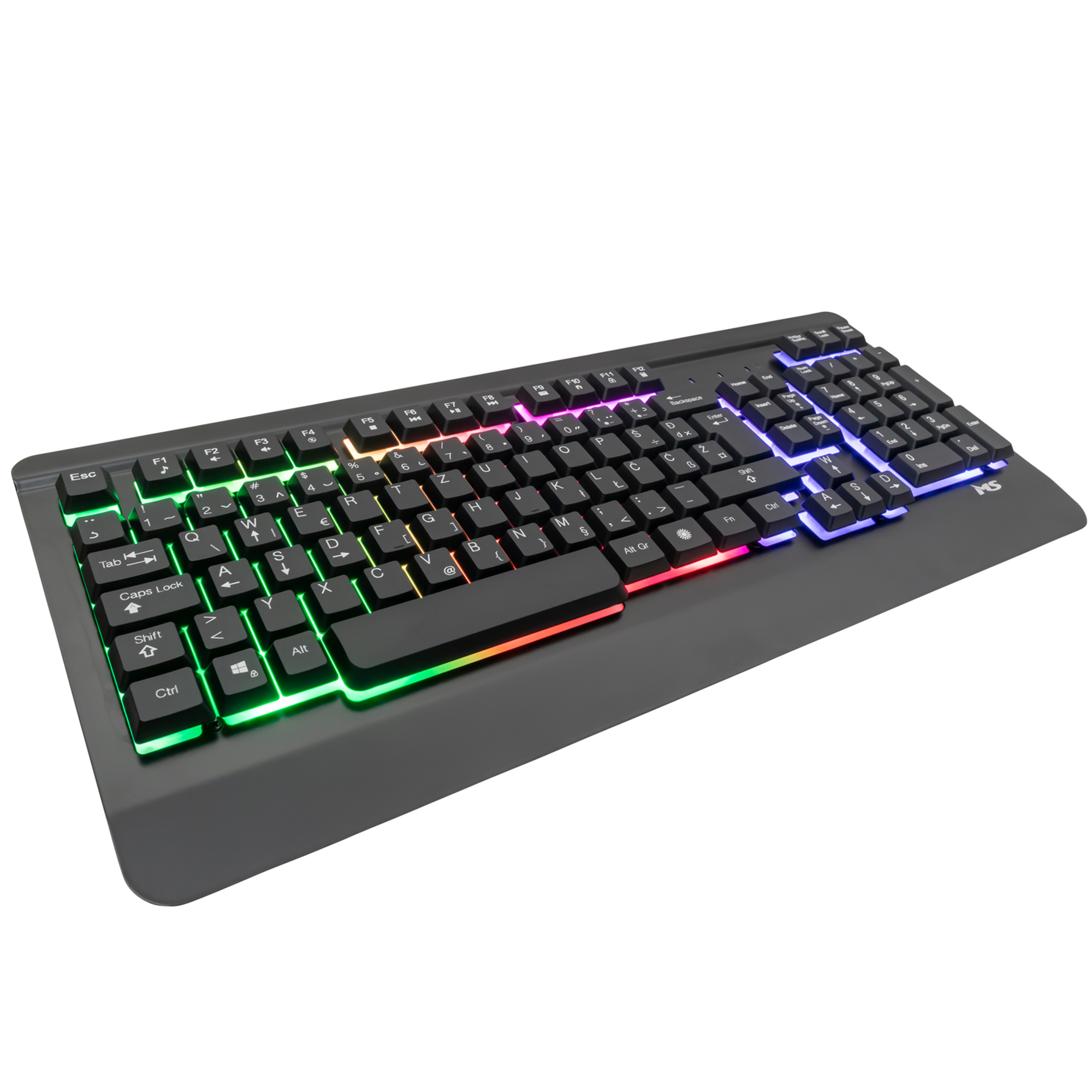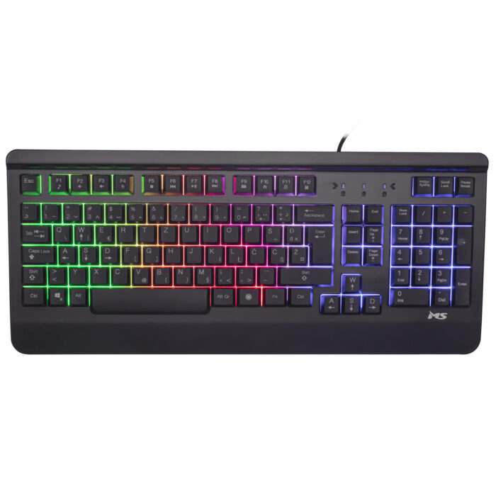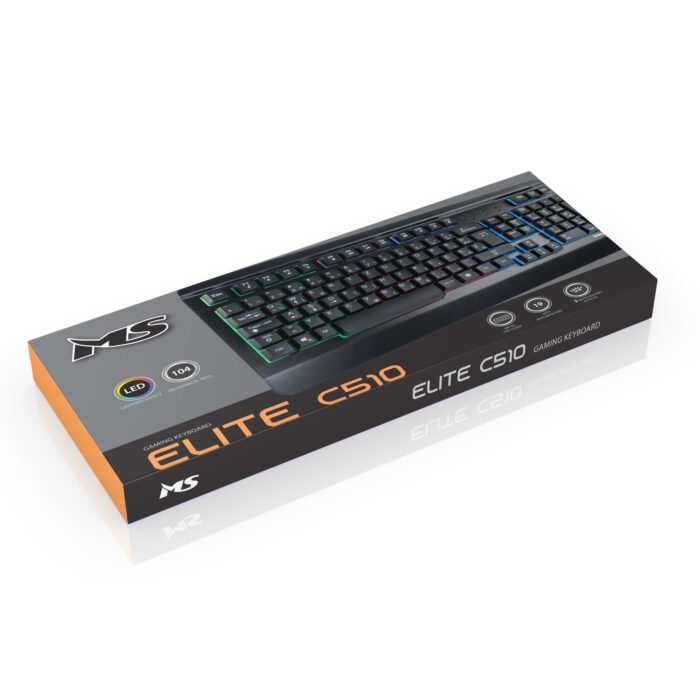 MS ELITE C510 membrane gaming keyboard, USB port, 3 modes of Rainbow backlight to switch by pressing the LED button, cable length 1.5m, dimensions: 436x190x30mm, black color.