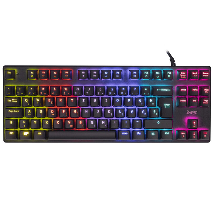 The wired mechanical keyboard MS ELITE C515 enables fast and precise response and ensures an advantage in playing your favorite games. The attractive Rainbow LED backlight will raise the gaming experience to a higher level. MS ELITE C515 wired mechanical keyboard with Rainbow LED backlight with 9 lighting options, USB port and braided cable length...