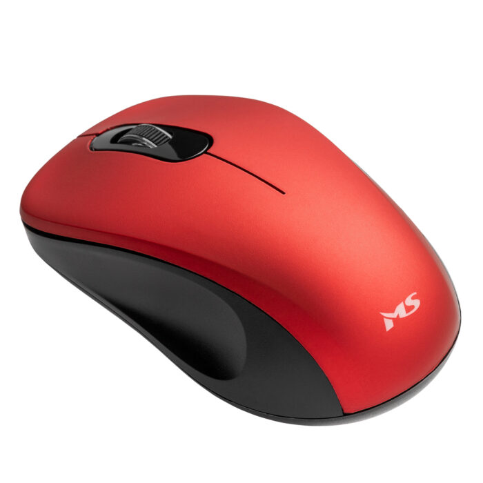 MS FOCUS M122 Wireless optical mouse, with 2 buttons and a scroll button, USB port, range 6-10m, resolution 1200 DPI. Red color.