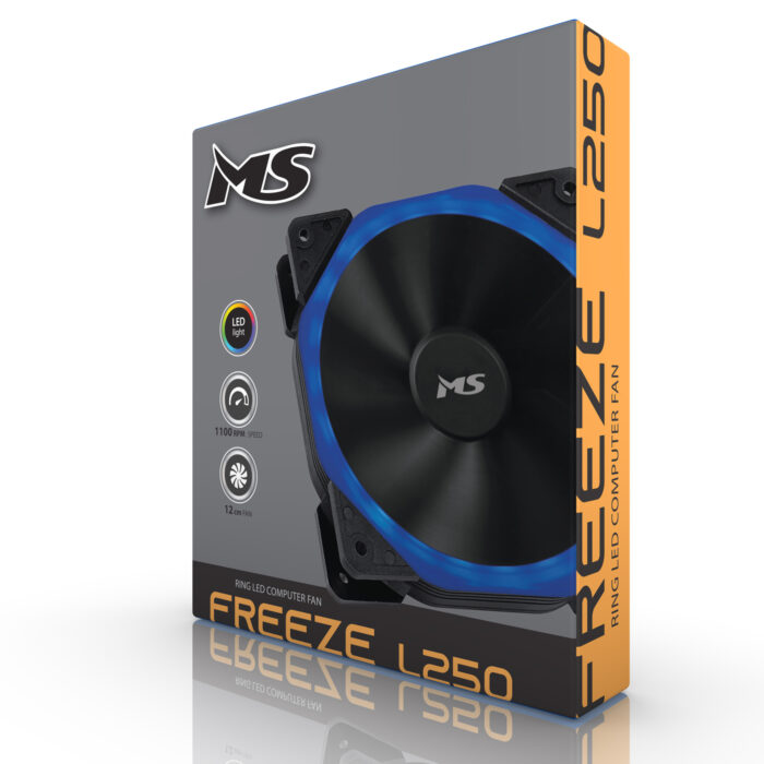 The FREEZE L250 fan comes with 22 blue LED lights that give your case an attractive look. It ensures efficient ventilation of the components inside the case and is equipped with rubber pads that prevent vibrations during the operation of the fan itself. MS FREEZE L250 blue LED fan, 12x12xx2.5cm, 22 led lights, 5.0 V,...