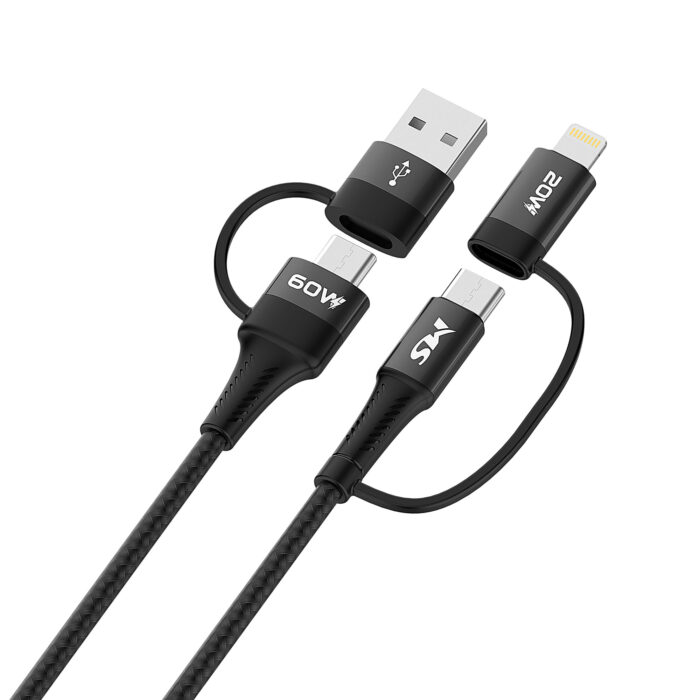 MS KABEL USB-A/C ->Type C/Lightning, 4-1, PD, Najlon pleten+Aluminij-legura, Type-c -type-c :60W , Type-c-Lightning :20W, Duljina: 1m , Boja: crna. Kabel podržava screen mirroring mobitela u automobilu.