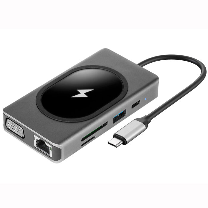 USB HUB C700, HDMI+VGA+USB+PD+RJ45 1Gbps M+SD+Audio+15W, MS